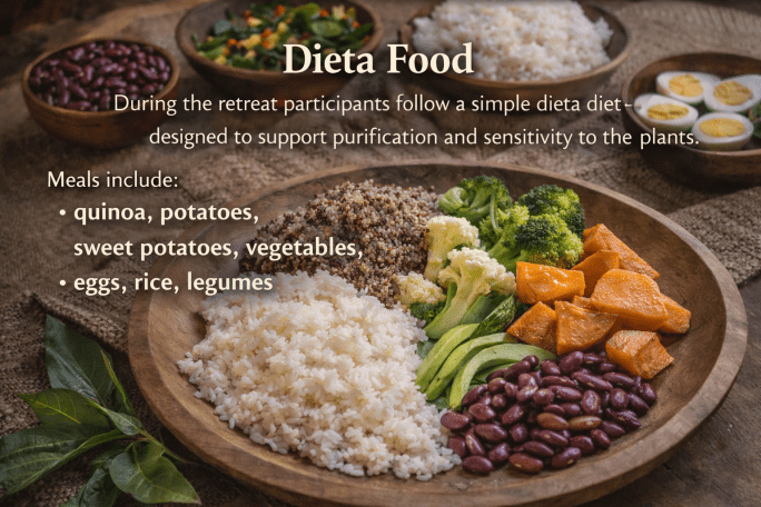 During the retreat participants follow a simple dieta diet designed to support purification and sensitivity to the plants.